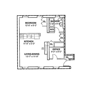 1 Bedrooms w/Office